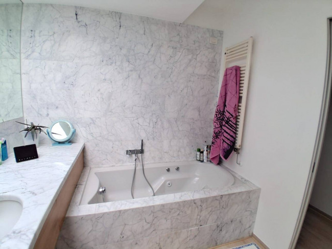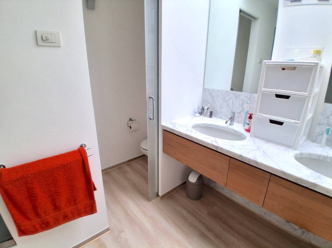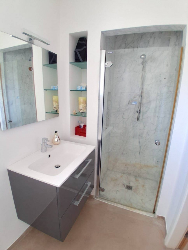 Ci sono porte a vetri scorrevoli per dividere i vari ambienti della zona giorno, le finiture dei bagni sono in marmo.