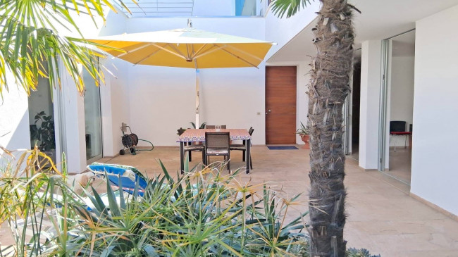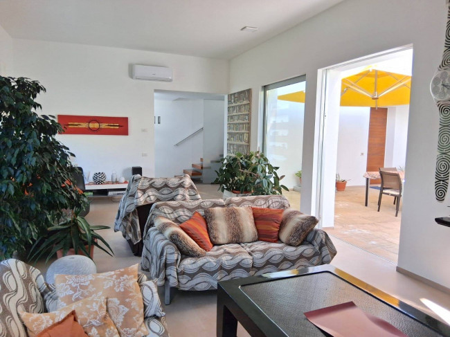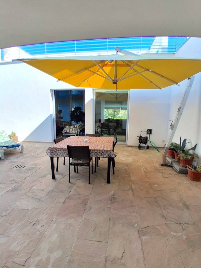 Grande è la corte interna al centro dell'immobile, raggiungibile dalle ampie portefinestre del salone, della cucina e della sala da pranzo: una zona da sfruttare pienamente nelle giornate di mezza stagione e nelle sere estive, adornata da varie piante tra cui delle palme.
