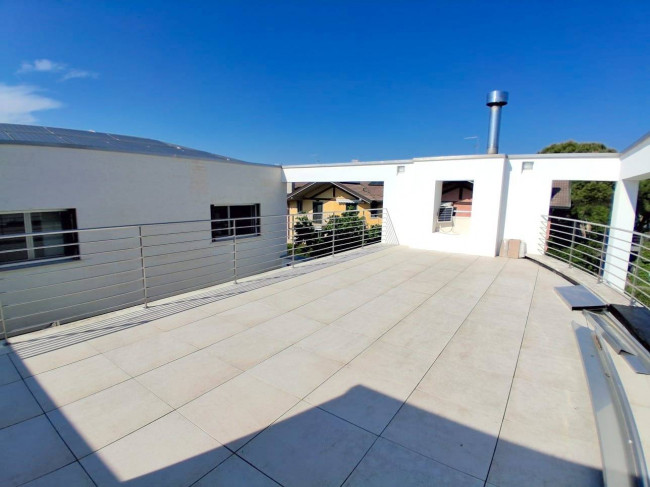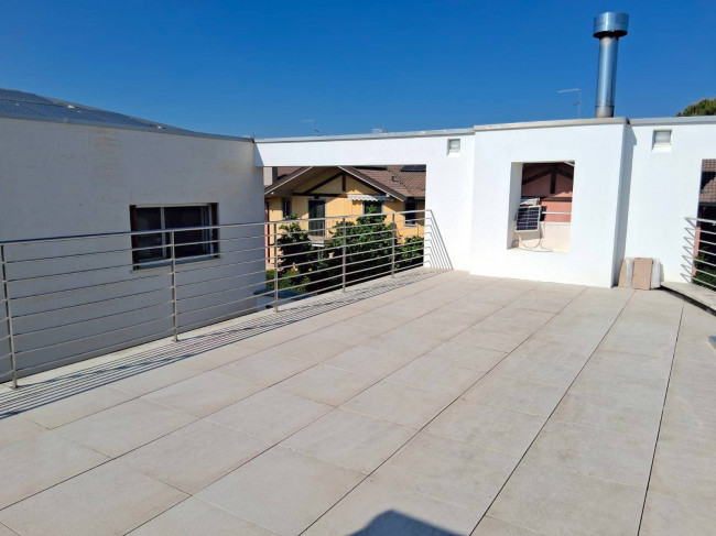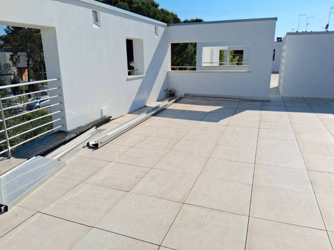 Dal corridoio, tramite una breve rampa di scale raggiungiamo una grande terrazza, ideale per godersi i tramonti estivi in totale relax e per prendere il sole in totale privacy.